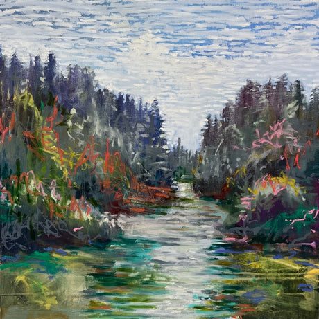 Monica's paintings depict colourful images of our natural surroundings with a focus on water and fantastic skies.