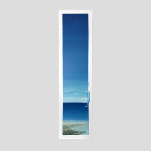 From this voyage emerged a body of work that evokes both escape and contemplation—like a sanctuary where the sea’s blues speak softly to the soul.