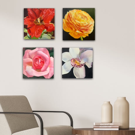 She is well known as "The Painter of Petals" and has been the recipient of many prestigious awards, including both a silver and vermeil medal for excellence in painting by the Arts, Sciences and Lettres academy of Paris. She has exhibited four consecutive years from 2013-2016 as part of the Canadian Delegation at the Society National des Beaux Arts at the Louvre in Paris. Attention to detail, mastery of colour and striving for excellence are her driving forces behind her painting. In addition to florals, "Purple Rhapsody" and "Sundance" were juried into the Artistes du Monde held in Cannes in 2014 where she was presented to Marina Picasso.