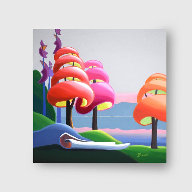 "My subject matter is the Canadian landscape and my method is smoothly applied paint whether acrylic or oil. I strive to see beyond the busy surface of things and capture the light, colours and shapes of this numinous land. While each painting is inspired by on-site Plein-air studies and sketches; the final result pushes the boundaries to something more transcendent, more spiritual; as if I am painting the soul of the landscape..." - Barbel Smith